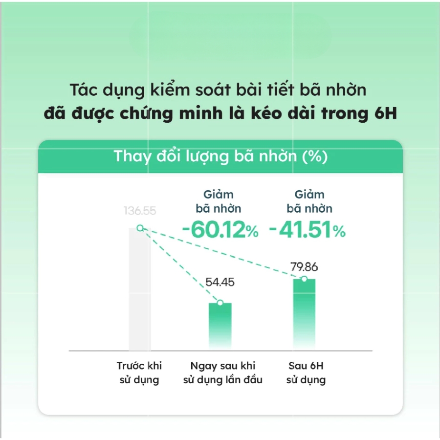 Hiệu quả kiềm dầu lên đến 6 giờ, giữ cho làn da thoáng mịn suốt ngày dài