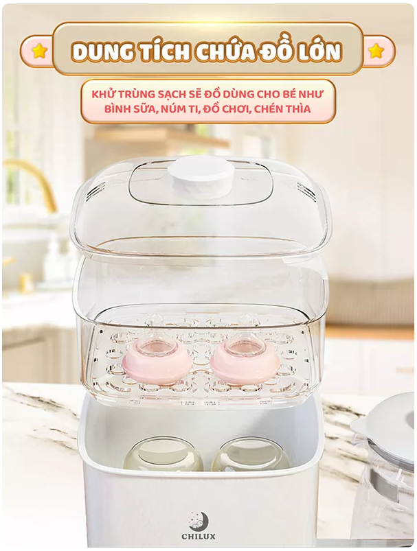 + Bình đun thủy tinh cao cấp BorosiliateMáy Tiệt Trùng Sấy Khô Hâm Sữa Chilux C1 – Bảo hành 2 năm chính hãng, miễn phí vận chuyển toàn quốc