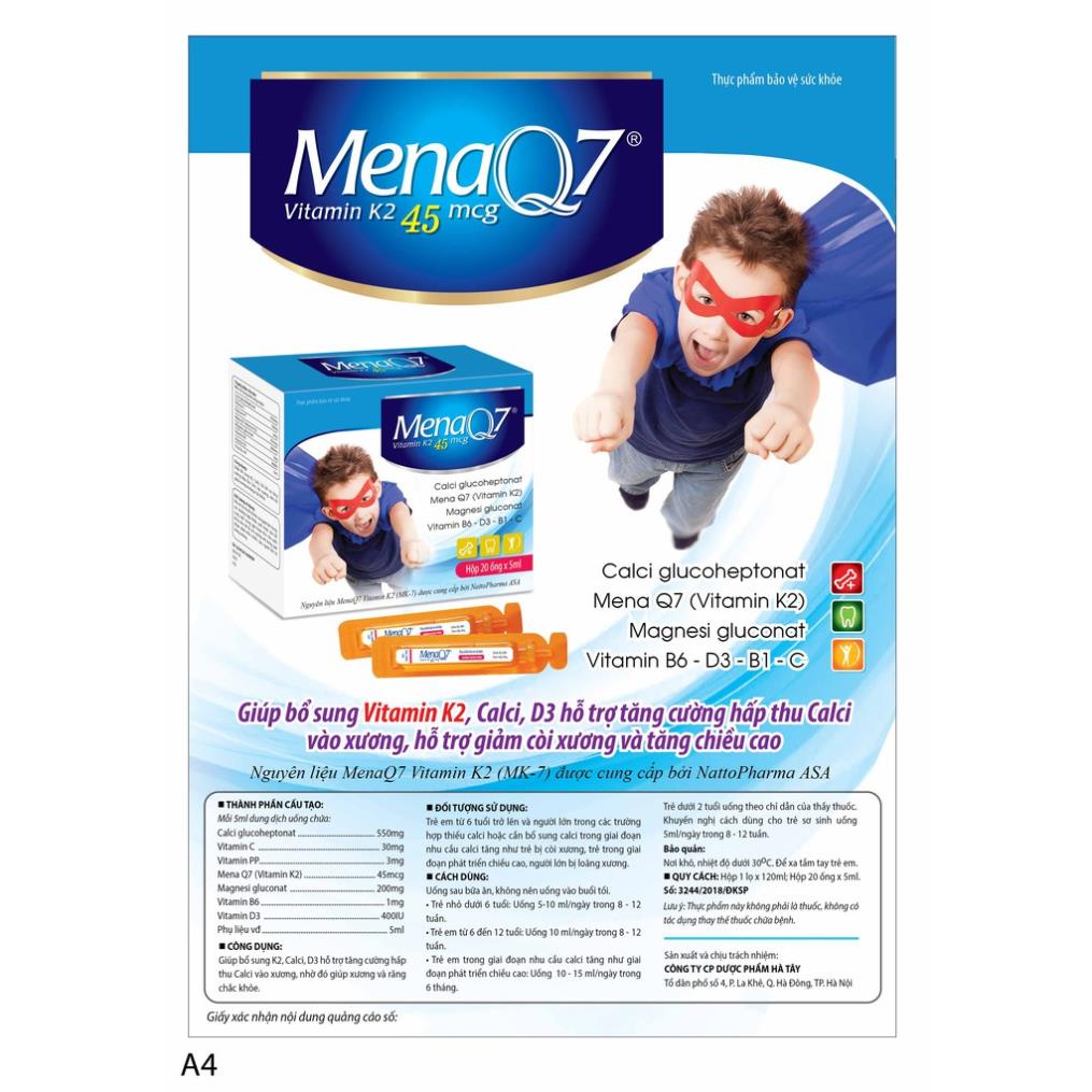 Đối tượng MENA Q7 VITAMIN K2 45MCG: Trẻ em trong giai đoạn nhu cầu calci tăng như giai đoạn phát triển chiều cao