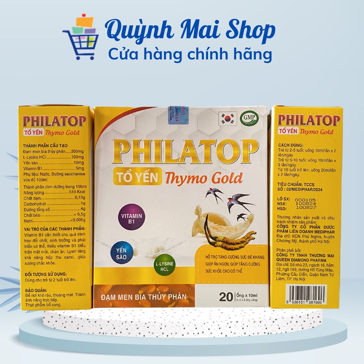 Philatop Tổ Yến sào Thymo Gold hỗ trợ nâng cao sức đề kháng, giúp cơ thể khỏe mạnh, tăng cường tiêu hóa, ăn ngon - Hộp 20 ống x 10ml