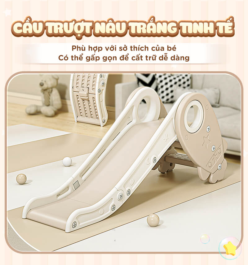 - Cầu trượt gấp gọn và lắp đặt linh hoạt nhiều vị trí, giúp tiết kiệm không gian của set quây.