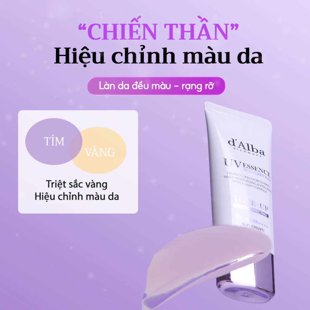 Sắc tím nhẹ giúp trung hòa undertone vàng, cải thiện làn da xỉn màu và mang lại hiệu ứng sáng da căng bóng tự nhiên, trong trẻo.