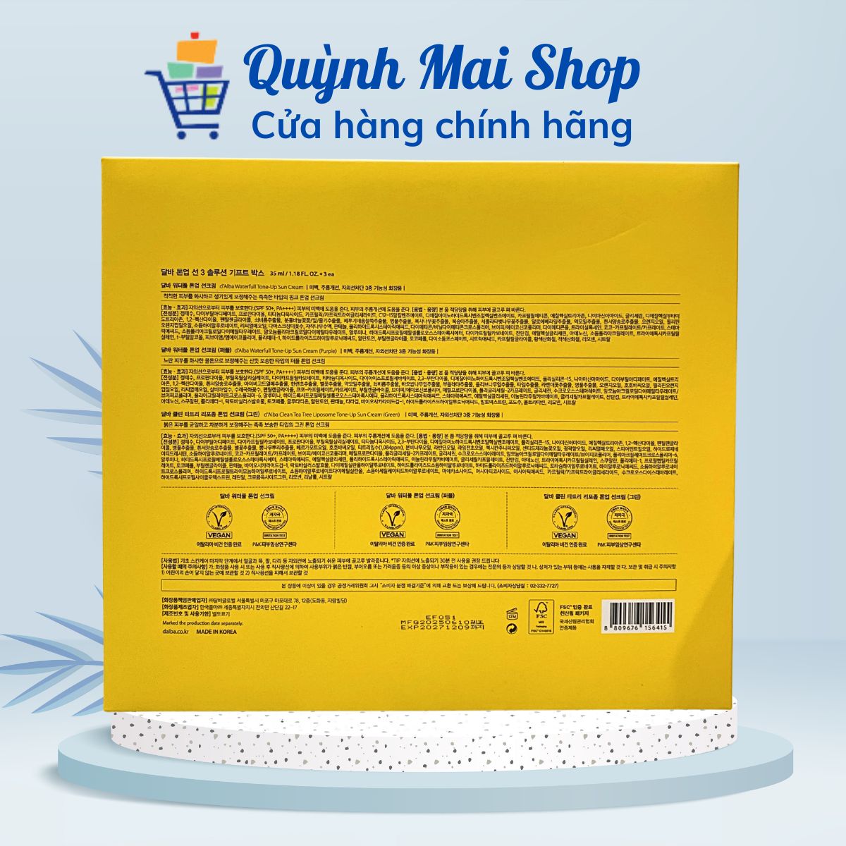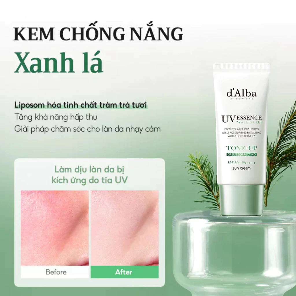 3.d’Alba Waterfull Tone-Up Sun Cream – Xanh lá dịu nhẹ cho da nhạy cảm (35ml)