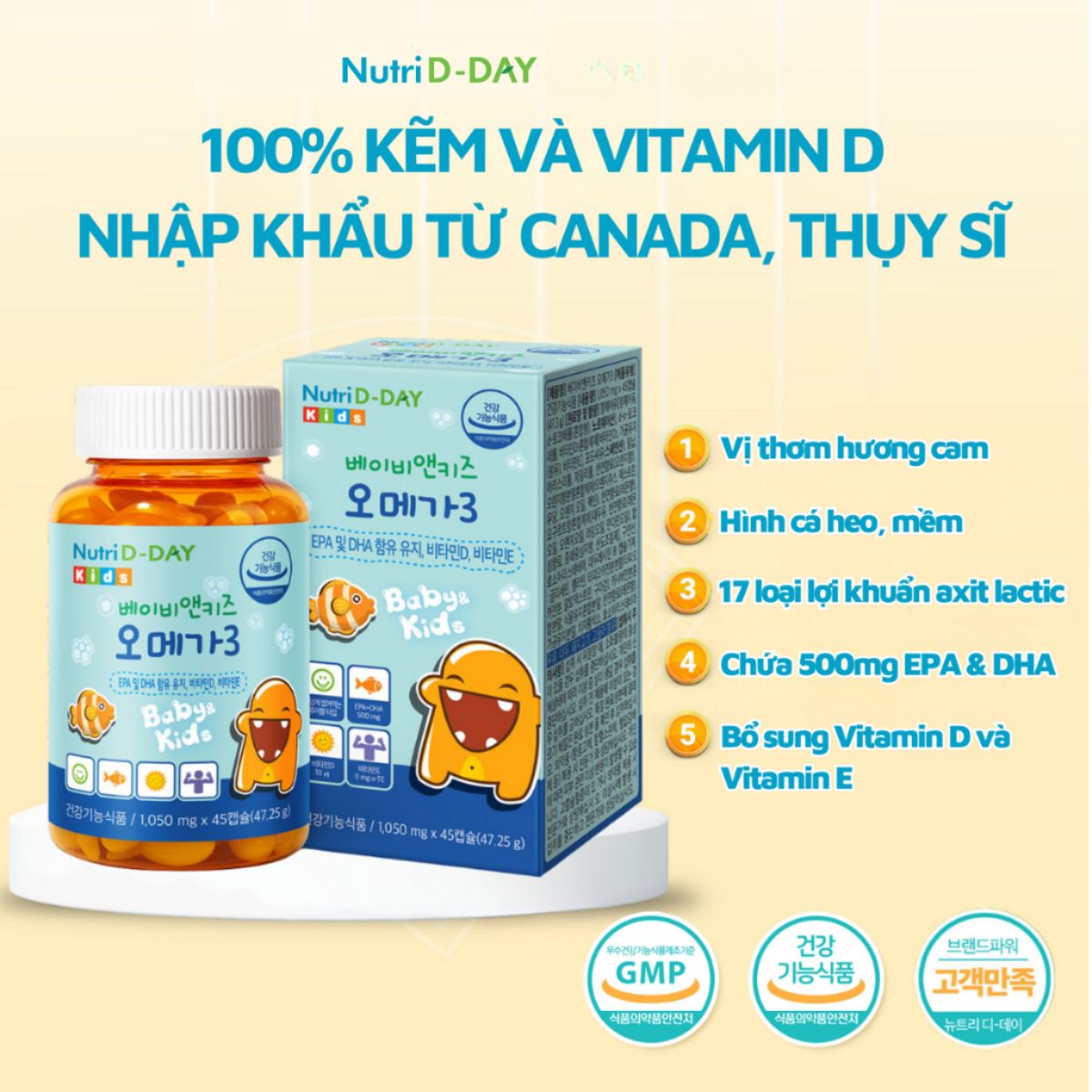Bổ sung DHA, EPA, vitamin D3, vitamin E cho cơ thể. Hỗ trợ lưu thông máu. Hỗ trợ hấp thu và sử dụng canxi và photpho, giúp duy trì xương. Hỗ trợ chống oxy hóa. Giúp phát triển trí não và tốt cho mắt ở trẻ.