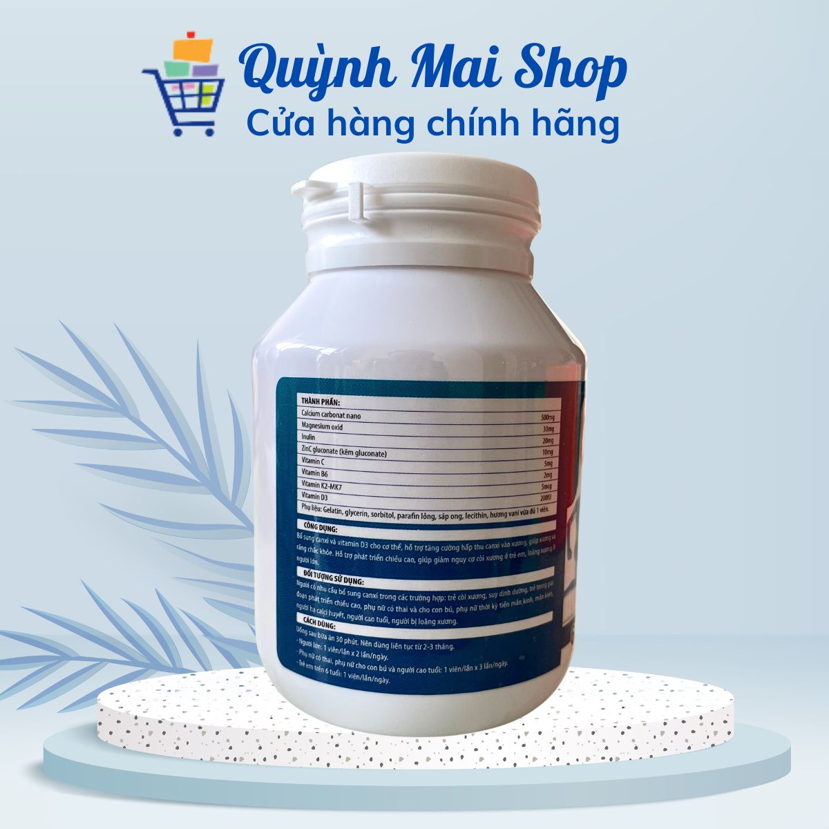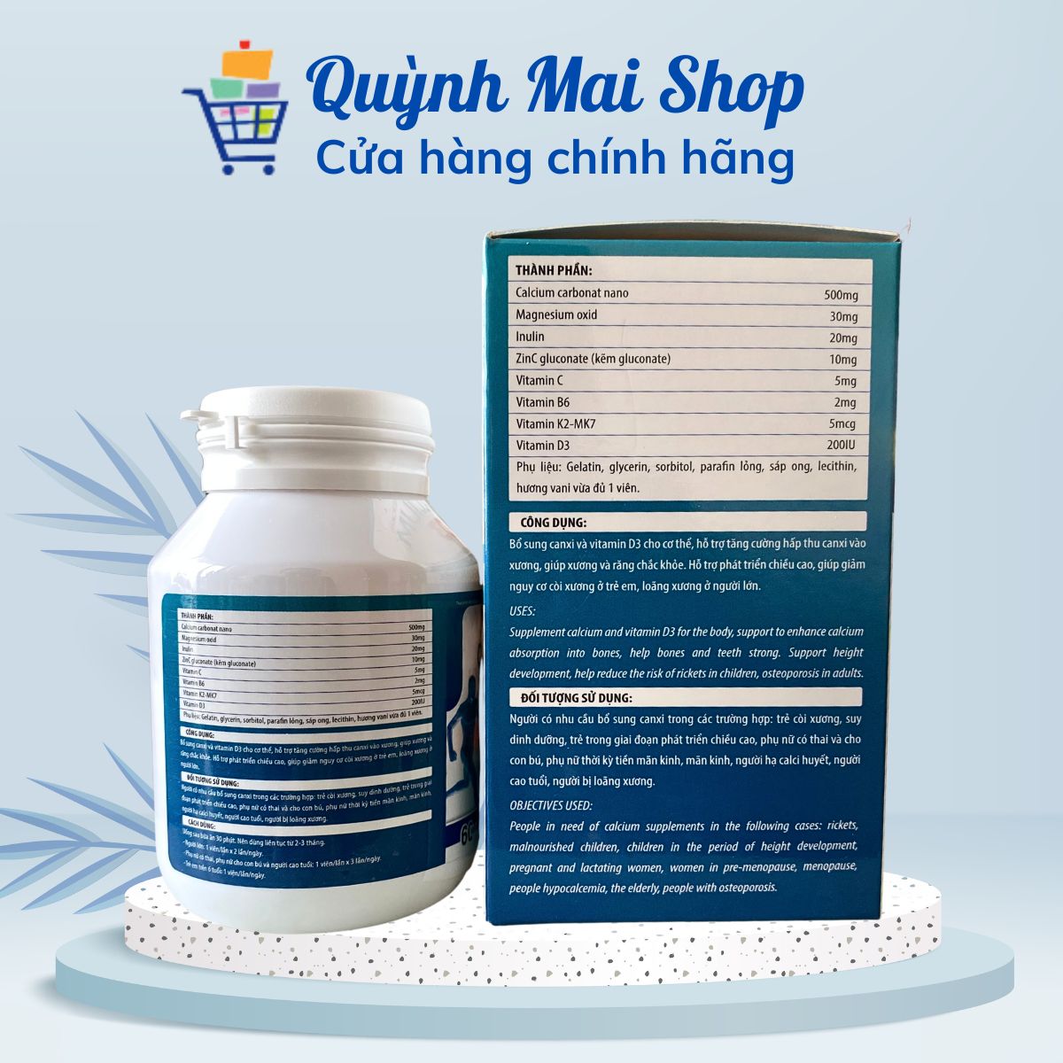 Supplement calcium and vitamin D3 for the body, support to enhance calcium absorption into bones, help bones and teeth strong. Support height development, help reduce the risk of rickets in children, osteoporosis in adults.