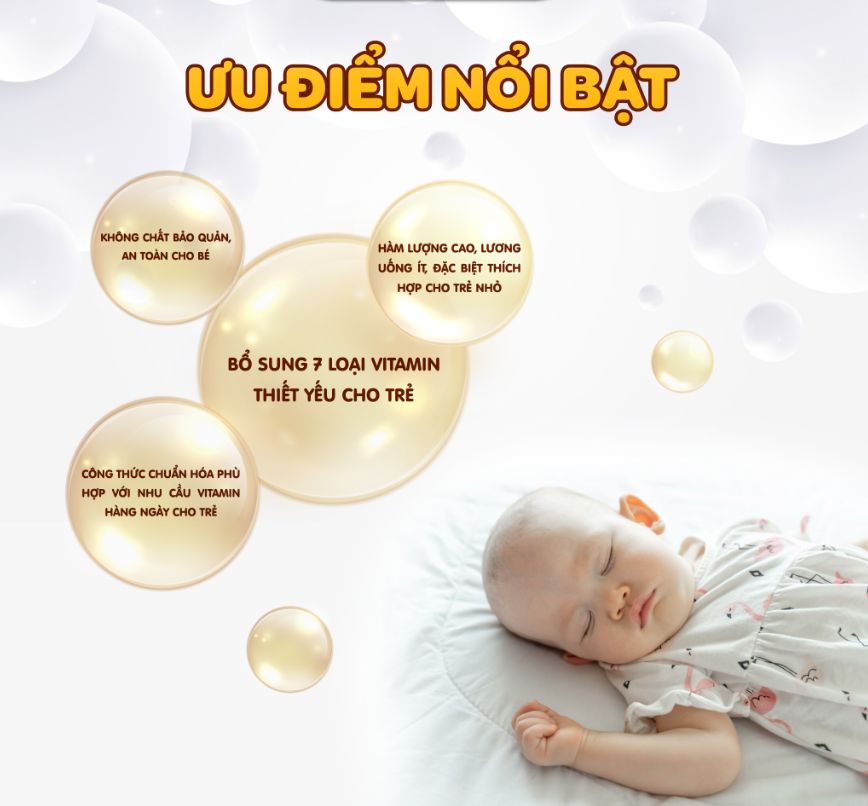 - Công thức chuẩn hóa phù hợp với nhu cầu vitamin hàng ngày cho trẻ