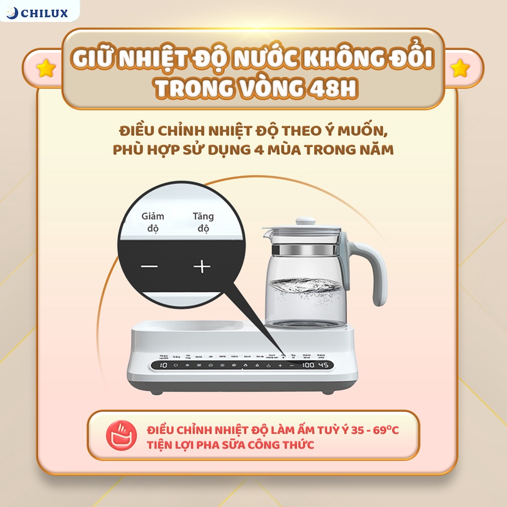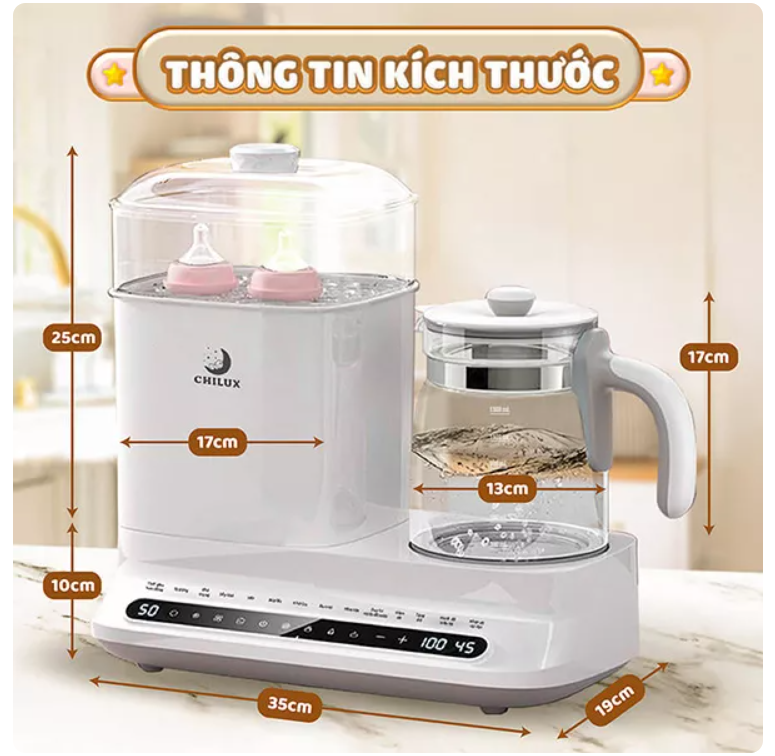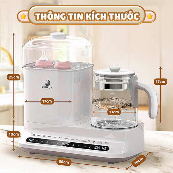 + Bình đun thủy tinh cao cấp BorosiliateMáy Tiệt Trùng Sấy Khô Hâm Sữa Chilux C1 – Bảo hành 2 năm chính hãng, miễn phí vận chuyển toàn quốc
