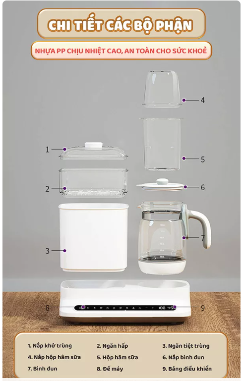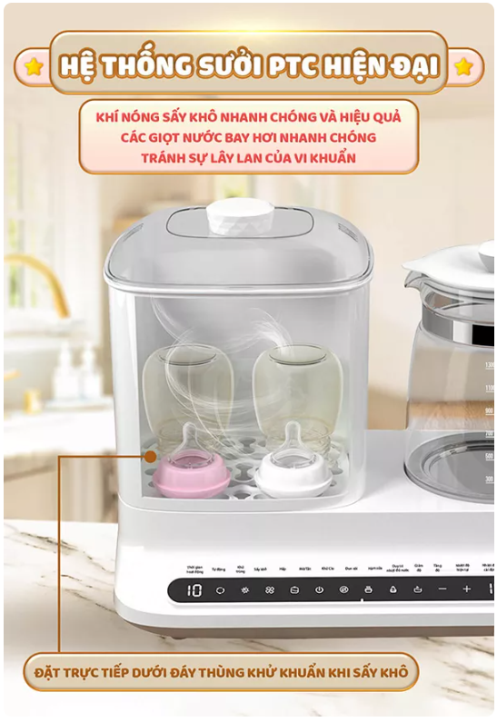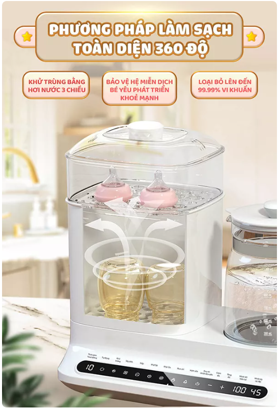 – Tiện lợi làm nhiều việc một lúc, vừa có thể tiệt trùng, sấy khô, vừa có thể đun sôi, hâm nóng sữa hay đồ ăn cho bé
