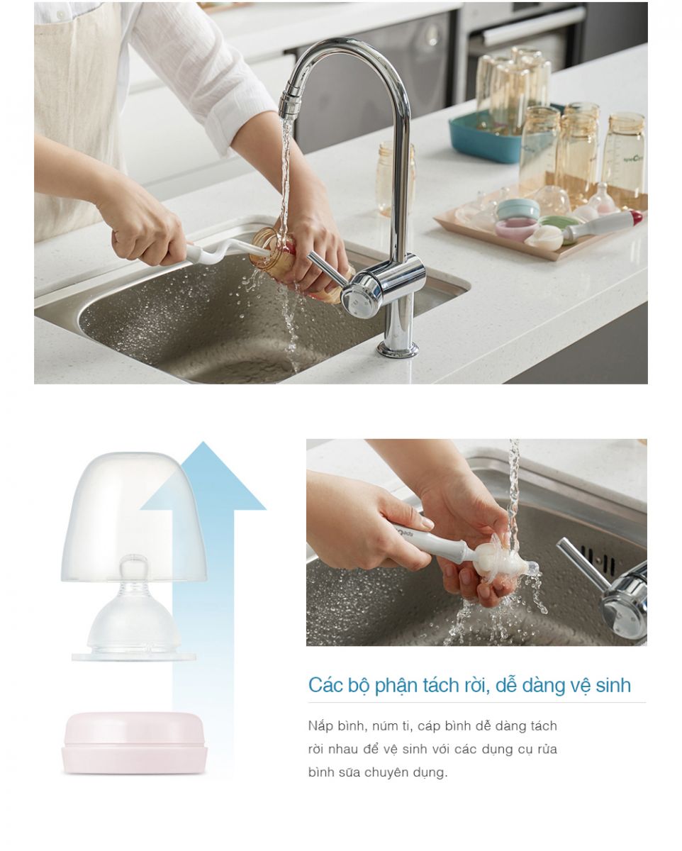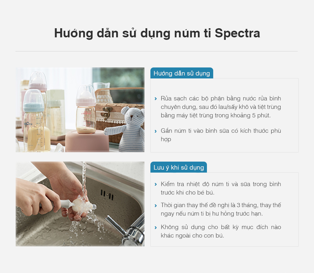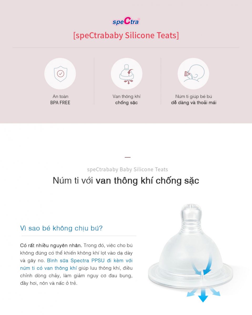 Một bộ bao gồm 2 núm ti với 4 kích cỡ khác nhau tương ứng với từng giai đoạn phát triển của bé. Mẹ có thể lựa chọn núm ti cỡ S cho bé từ 0 - 3 tháng, cỡ M cho bé từ 3 - 5 tháng, cỡ L cho bé từ 5 - 7 tháng và cỡ XL là trên 7 tháng.