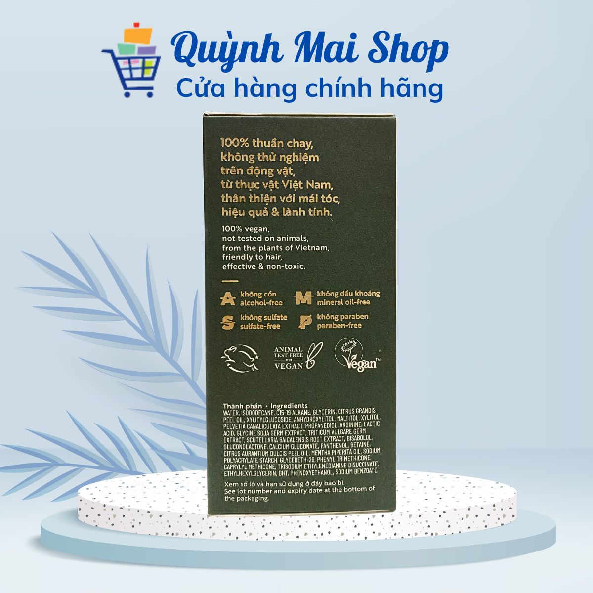 100% thuần chay, không thử nghiệm trên động vật, từ thực vật Việt Nam, thân thiện với mái tóc, hiệu quả & lành tính.