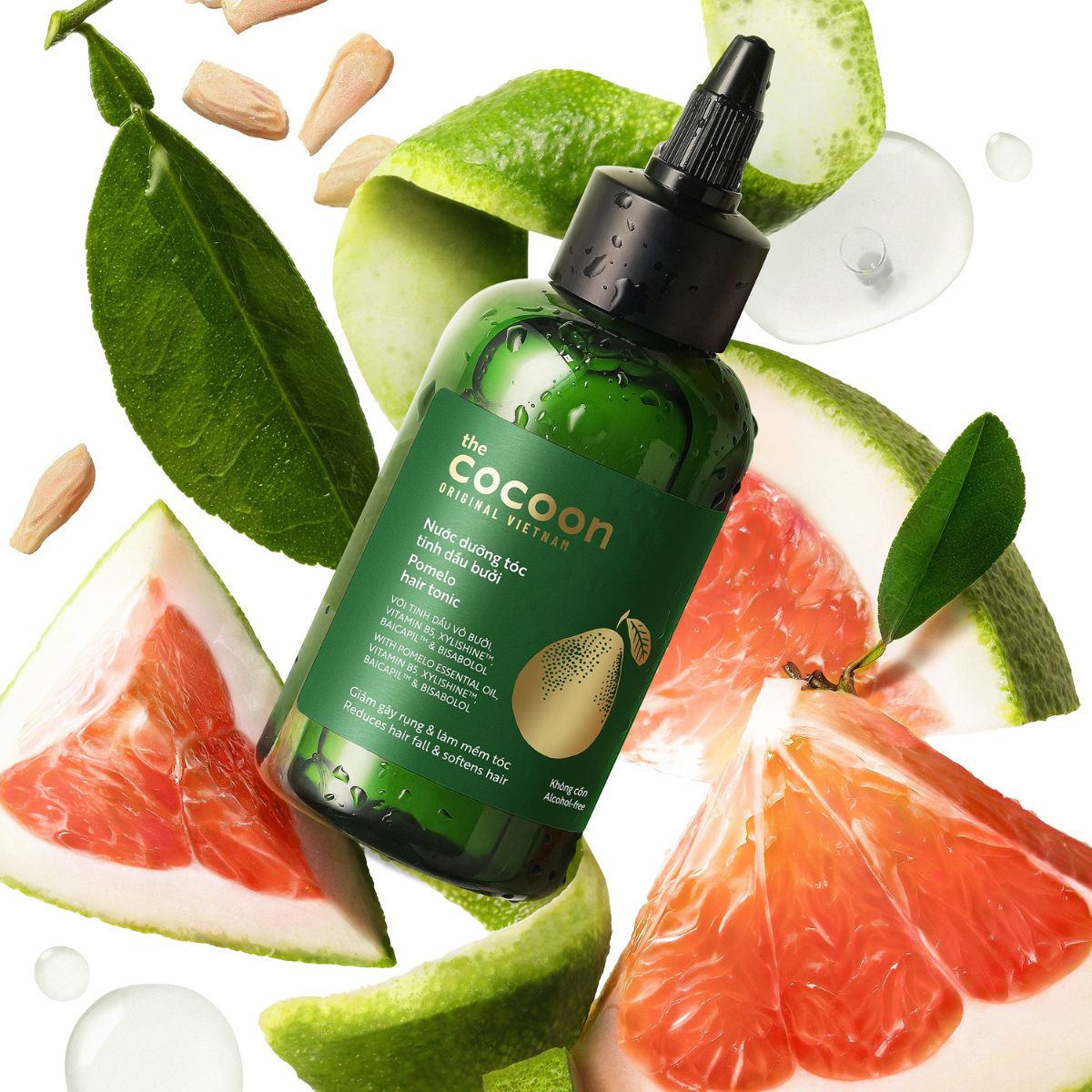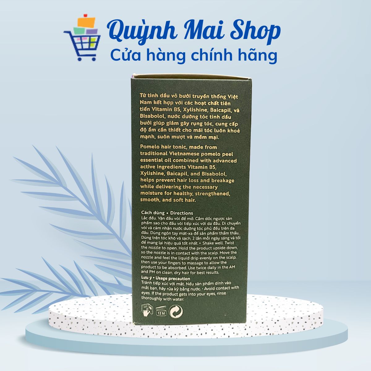 Pomelo hair tonic, made from traditional Vietnamese pomelo peel essential oil combined with advanced active ingredients Vitamin B5, Xylishine, Baicapil, and Bisabolol, helps prevent hair loss and breakage while delivering the necessary moisture for healthy, strengthened, smooth, and soft hair.
