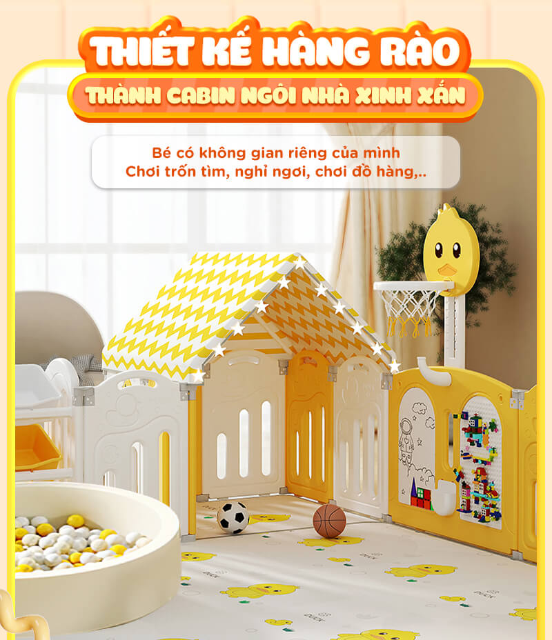 - Set quây có chức năng gấp gọn tiện lợi khi không sử dụng, khi cần dùng thì ba mẹ không cần tháo lắp phức tạp. Có thể lắp ráp linh hoạt đa dạng nhiều kiểu dáng sao cho phù hợp với không gian nhà của mỗi gia đình.