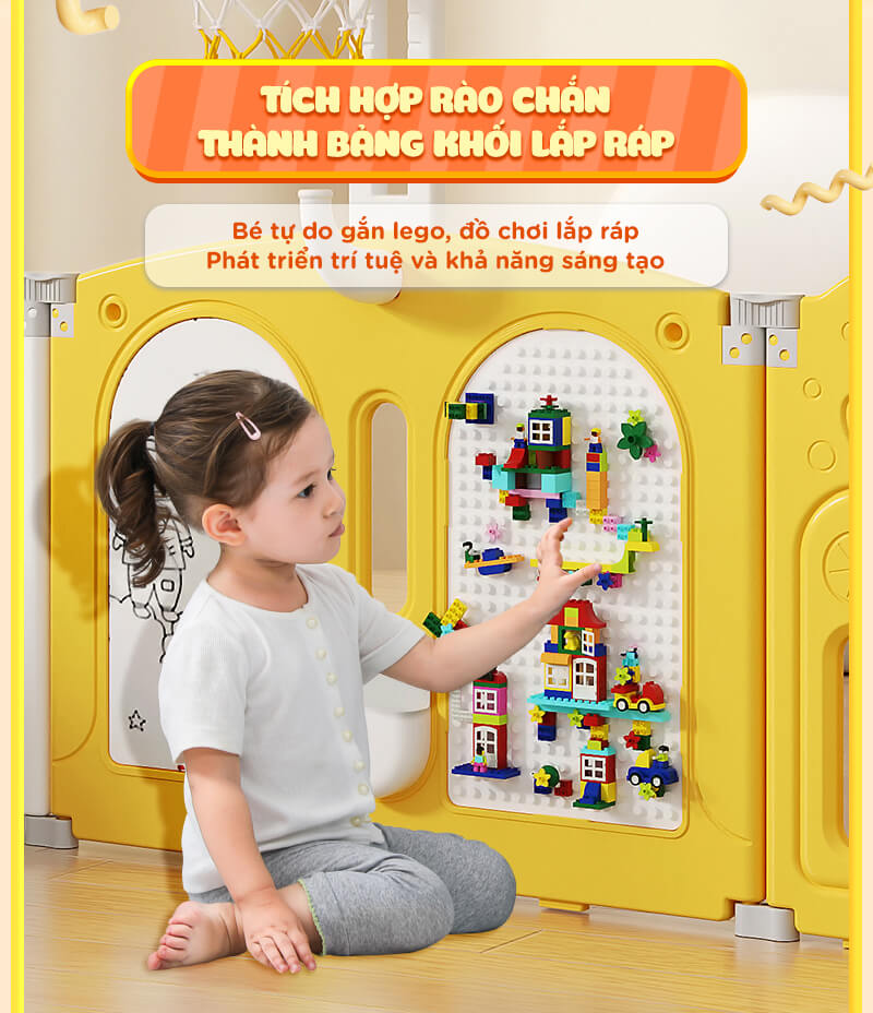 - Cột bóng rổ kết hợp bảng vẽ và bảng xếp hình Lego kết hợp khéo léo. Cột bóng rổ nâng hạ chiều cao, phù hợp với nhiều lứa tuổi.