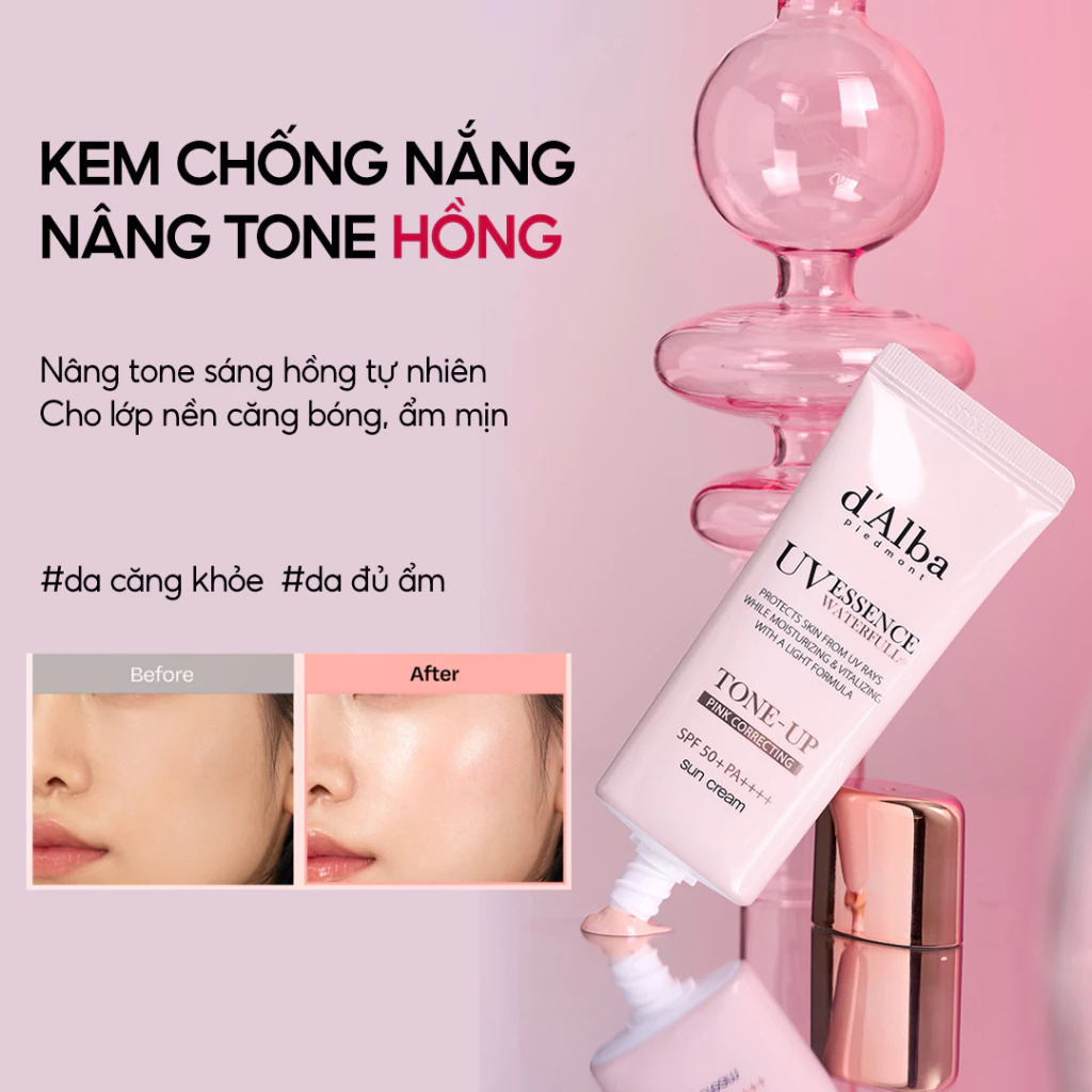 2.d’Alba Waterfull Tone-Up Sun Cream – Hồng nâng tông tự nhiên, căng bóng (35ml)