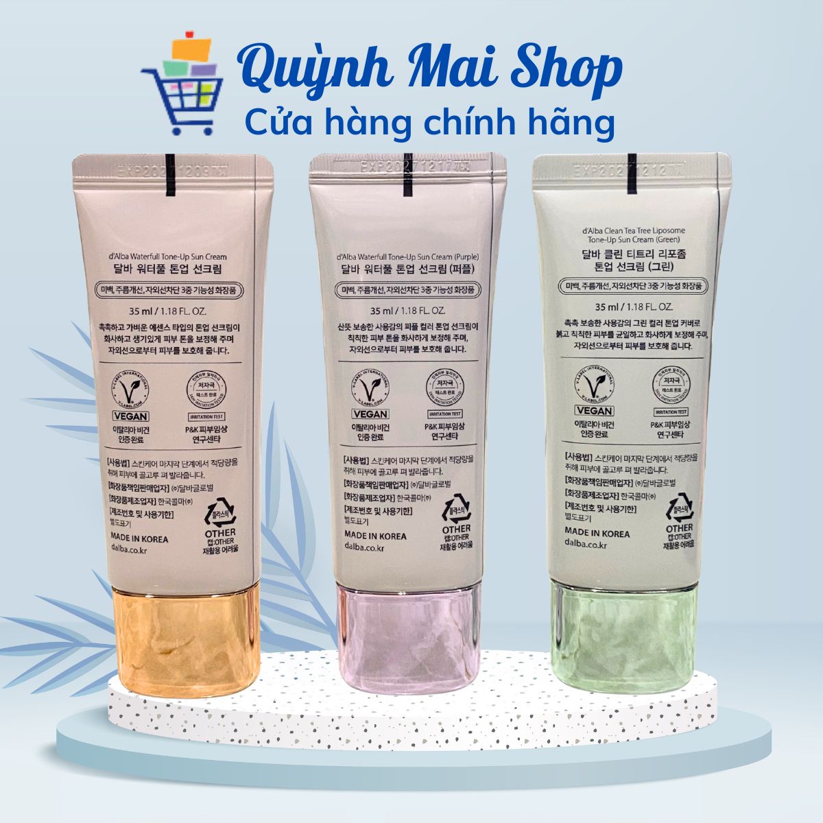 3.d’Alba Waterfull Tone-Up Sun Cream – Xanh lá dịu nhẹ cho da nhạy cảm (35ml)