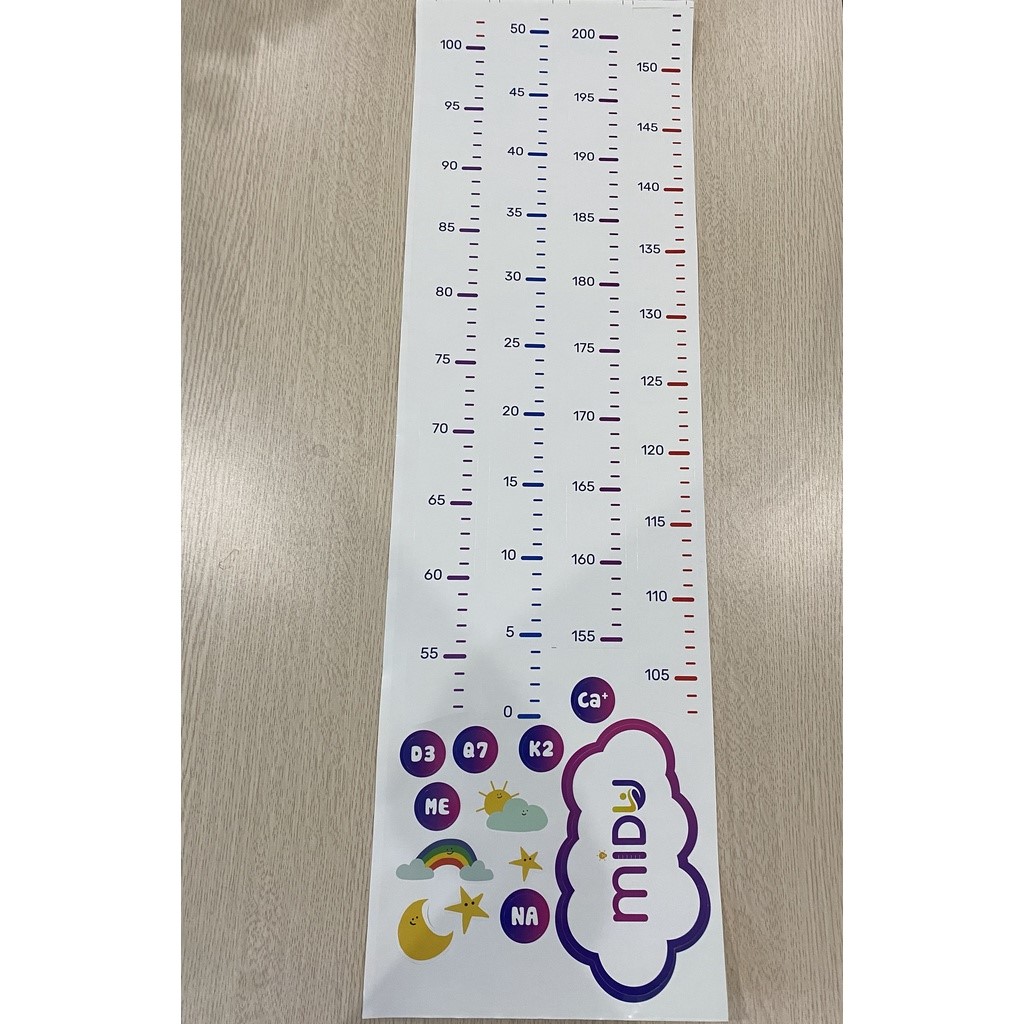 Thước đã có keo sẵn, chỉ cần bóc và dán. Trên thước có các mức chiều cao cố định cùng với khung đo giúp bạn biết được chính xác chiều cao hiện tại của bé yêu để có chế đọ ăn uống và hoạt động cho phù hợp với sự phát triển của bé.