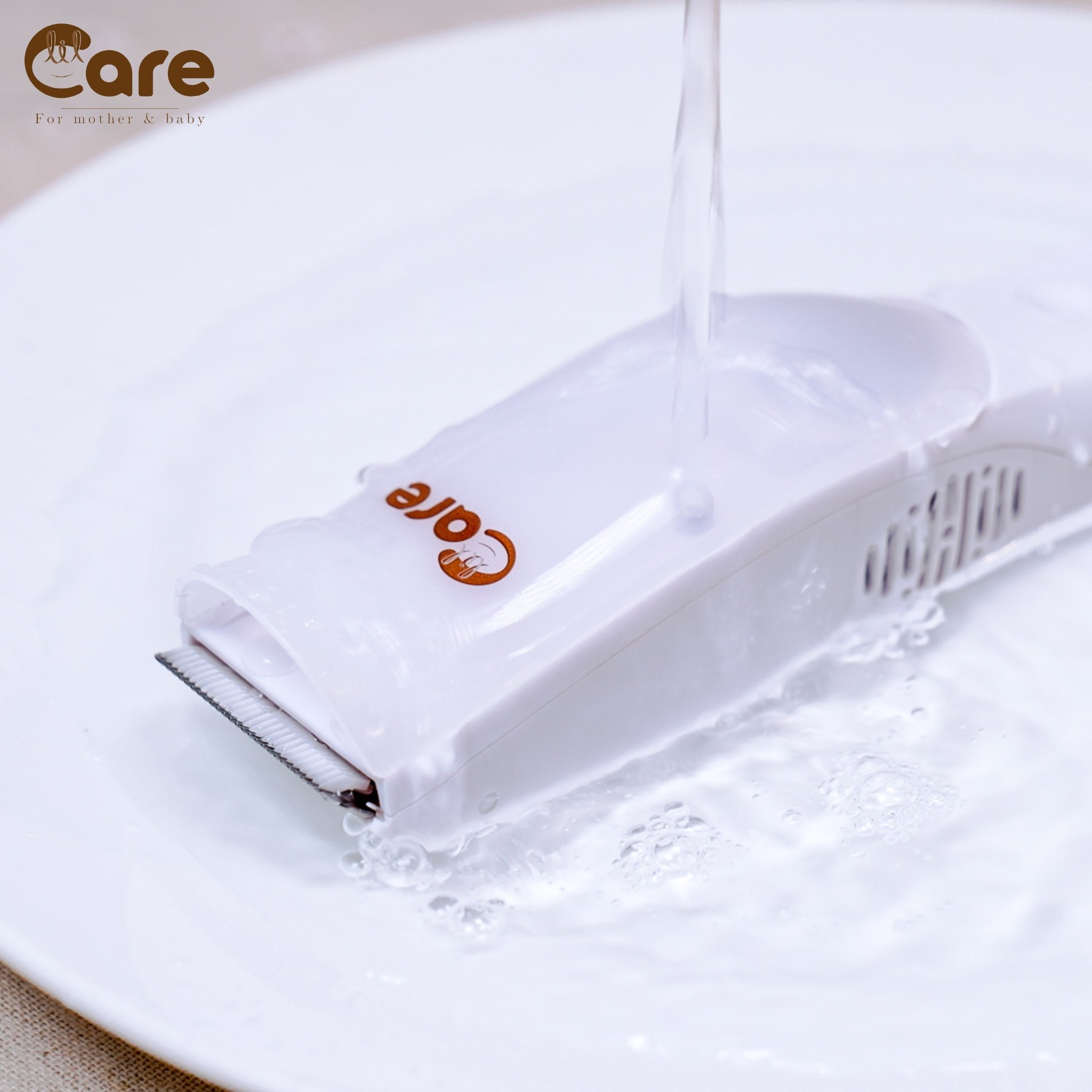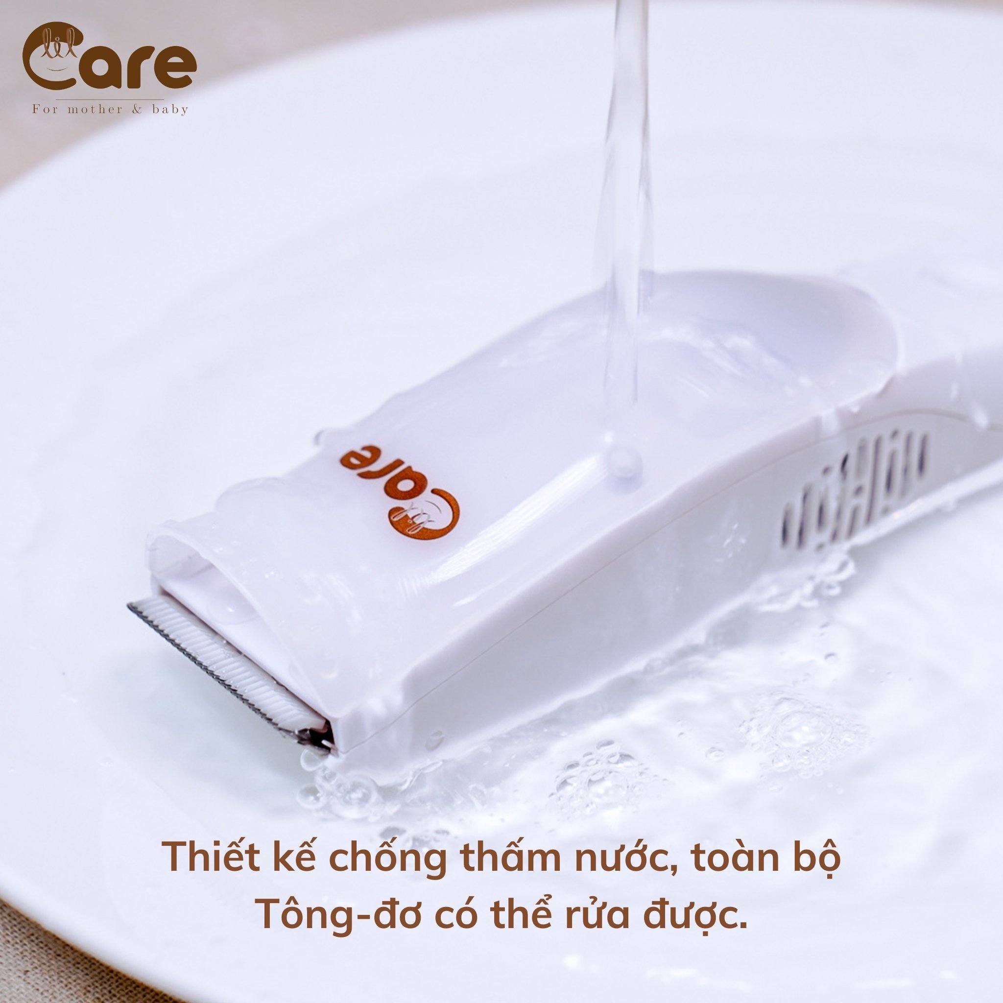 -Chống thấm nước tuyệt đối. Vì thế, mẹ có thể dễ dàng vệ sinh, cọ rửa toàn tông đơ với nước.