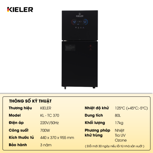Phiên bản lần này nâng cấp với việc Kieler đã trang bị cho tủ tiệt trùng công nghệ trí tuệ nhân tạo AI để tối ưu hóa trải nghiệm sử dụng. Với hai tầng riêng biệt có thể được sử dụng để khử trùng bằng ozon và tia UV cũng như khử trùng bằng nhiệt. KL – TC 370 là tủ khử trùng cao cấp, thiết kế hiện đại, tiết kiệm thời gian và công sức đồng thời đảm bảo dụng cụ phòng bếp luôn được sạch sẽ.
