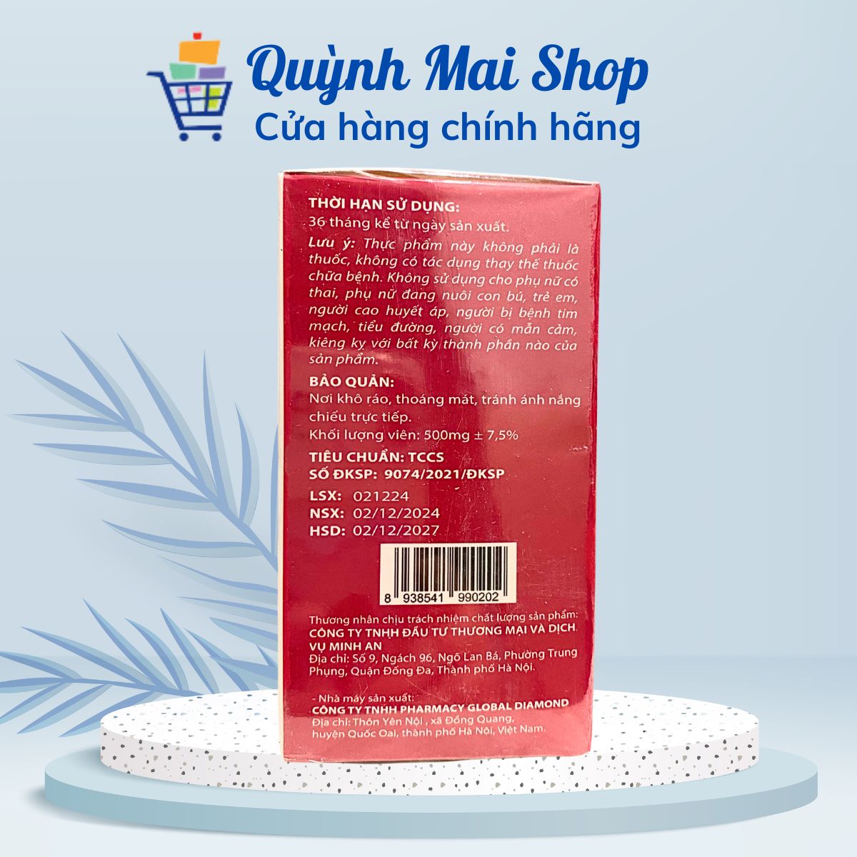 Phụ liệu: Vỏ nang Gelatin, tinh bột, talc, lactose, magnesium stearate vừa đủ 2 viên.