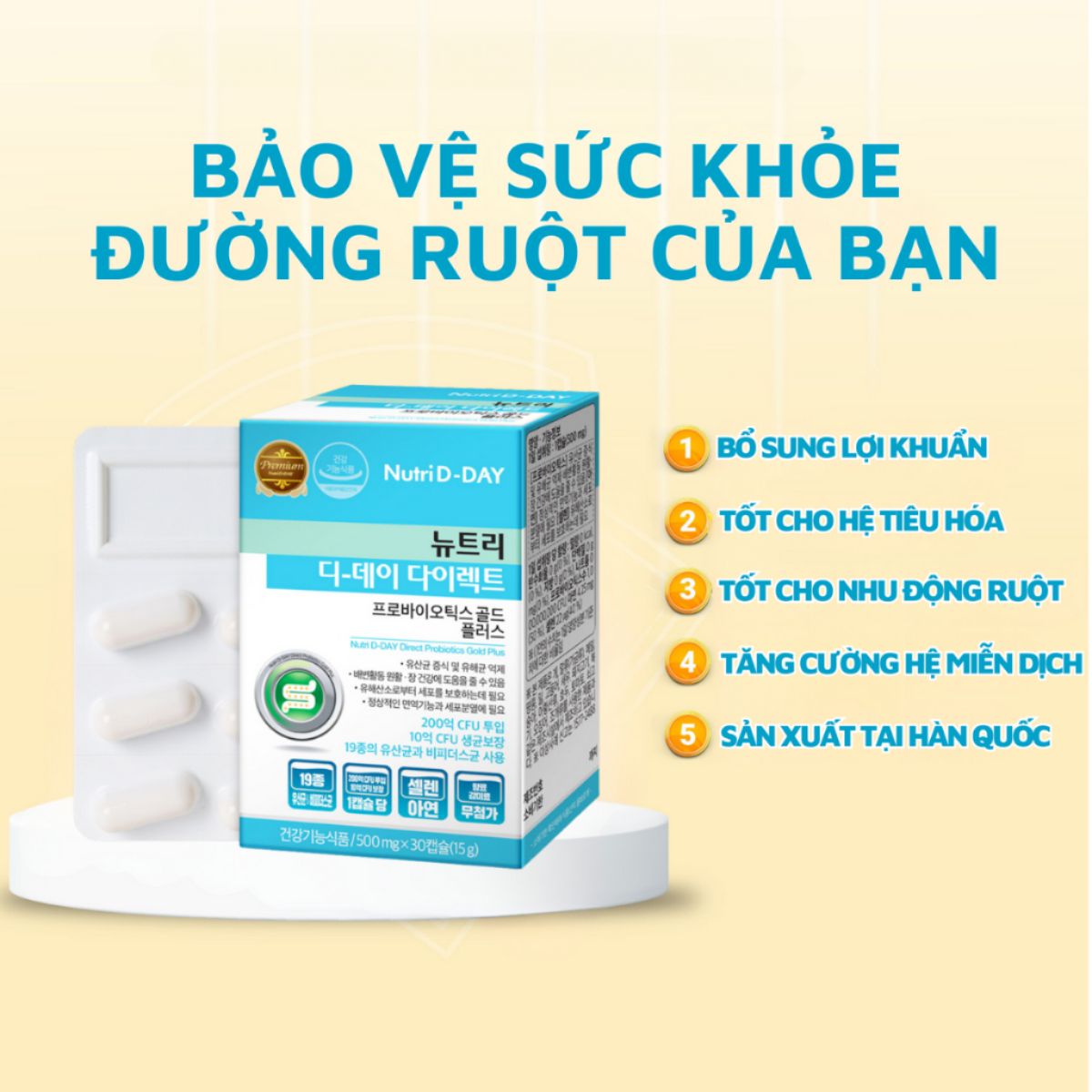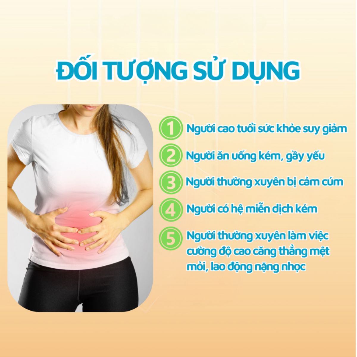 Công dụng: Bổ sung lợi khuẩn, giúp cải thiện hệ vi sinh đường ruột, hỗ trợ đường tiêu hóa khỏe mạnh. Giúp tăng cường sức đề kháng cho cơ thể.